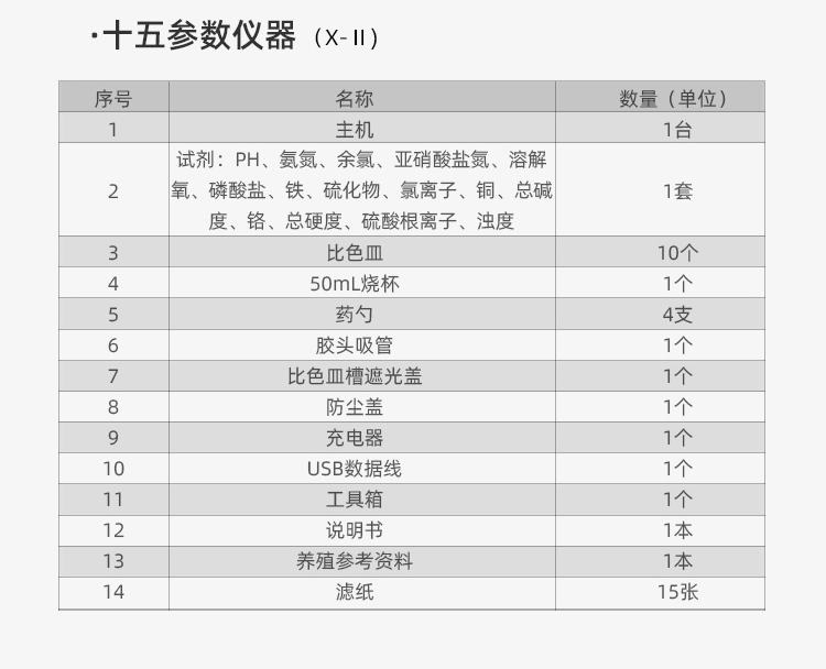 專業(yè)應(yīng)用于檢測水產(chǎn)養(yǎng)殖水質(zhì)指標(biāo)的專業(yè)儀器 12項檢測指標(biāo)(余氯 亞硝S酸鹽 氨氮 溶解氧等等)涵蓋了水產(chǎn)養(yǎng)殖中水質(zhì)檢測的基本要求。該儀器主要優(yōu)點數(shù)據(jù)準(zhǔn)確、操作簡單是國內(nèi)目前水產(chǎn)養(yǎng)殖行業(yè)內(nèi)性價比較高的便攜式水質(zhì)分析儀。它為科學(xué)的精細(xì)化水產(chǎn)養(yǎng)殖提供了最直接的工具。